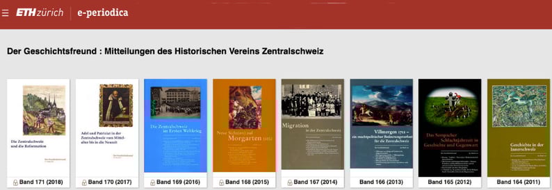 Der Historische Verein Zentralschweiz stellt den «Geschichtsfreund» auf e-periodica online zur Verfügung. Die jüngsten Bände sind den Mitgliedern des Vereins vorbehalten.